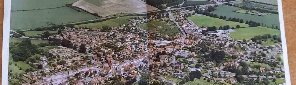 Brief description: Ariel view of Mere in colour showing the central part of the town. possibly 1980’s or 1990’s