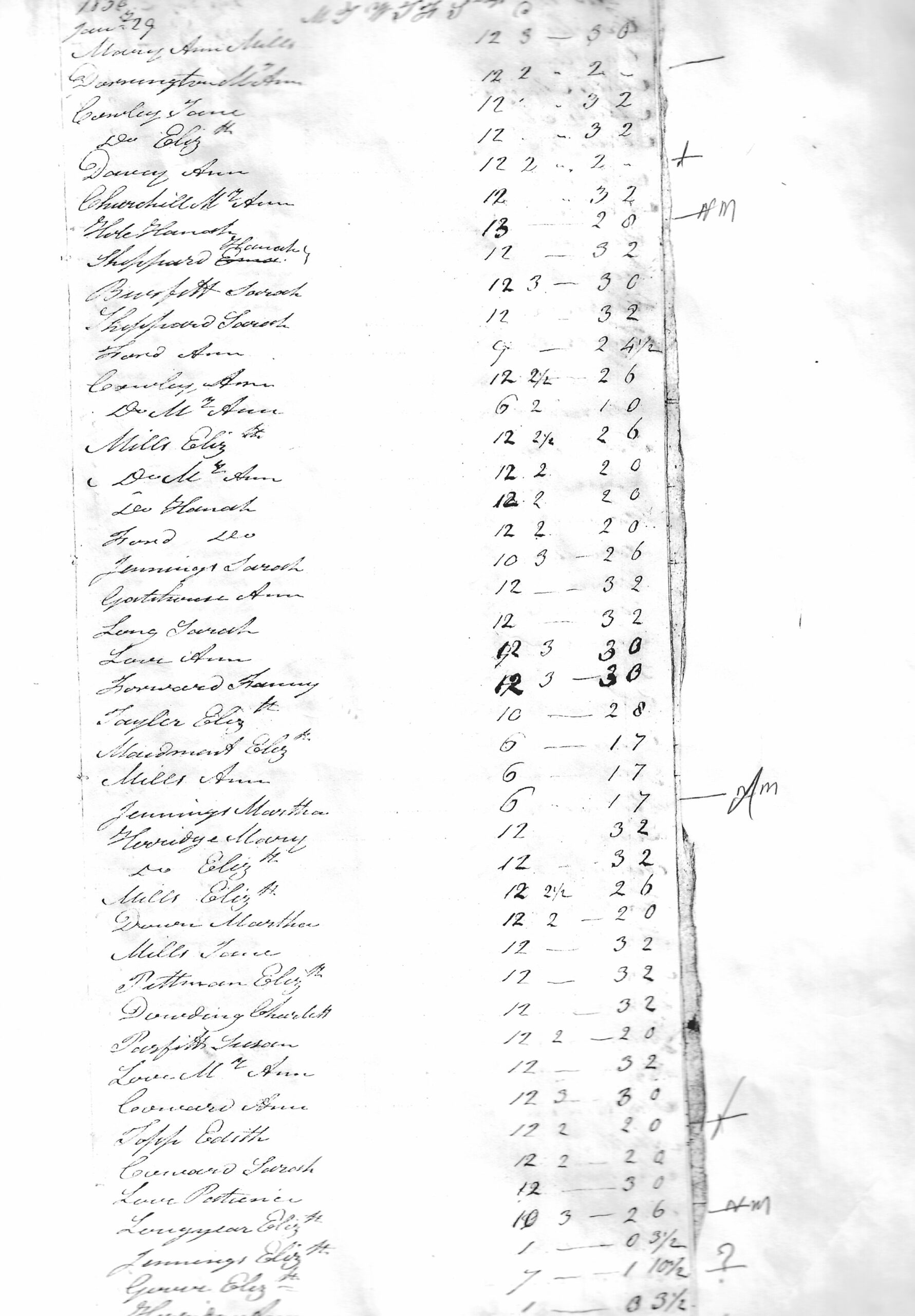 Brief description: black and white photocopy of The Silk Girls Book 1830, ten pages. Documents the number of days worked and the wages.