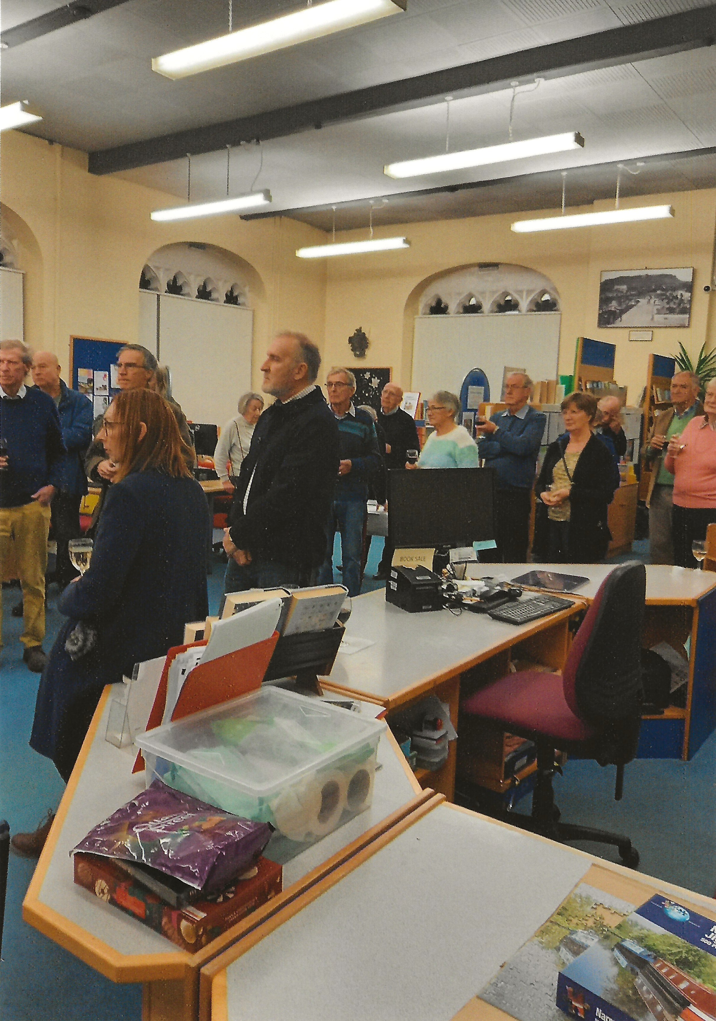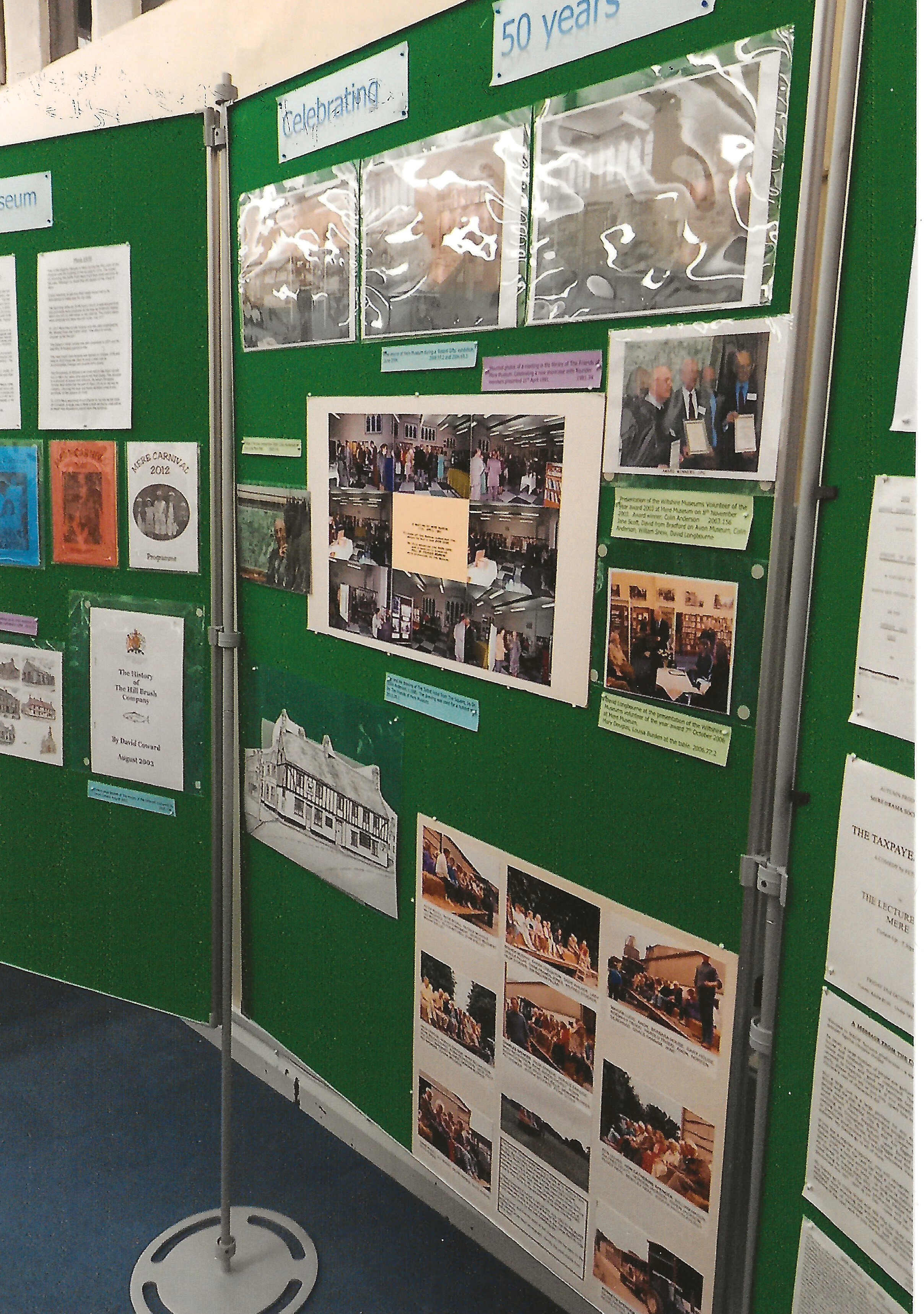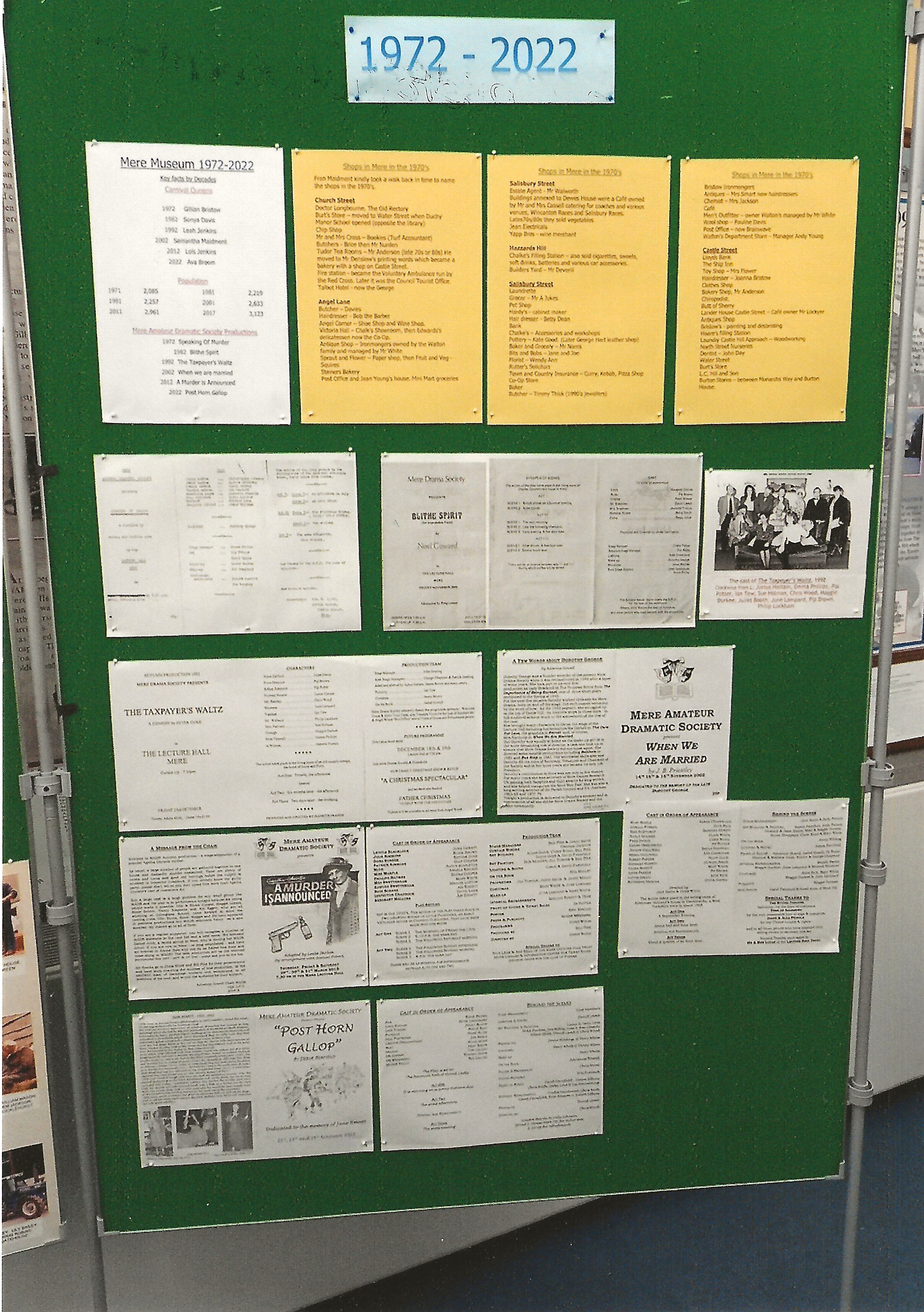 Brief description: coloured photograph showing Museum members enjoying the preview evening to celebrate 50 years of Mere Museum 1972 to 2022.